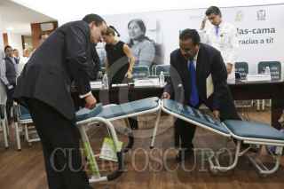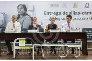 CIUDAD DE MÉXICO, 12SEPTIEMBRE2016.- José de Jesús Arriaga, director de prestaciones médicas del IMSS, Patricia Guerra, secretaría ejecutiva de fundacion IMSS, Javier Enrique López, director del Centro Medico Siglo XXI y Mikel Arriola, titular del IMSS, entregaron sillas-camas donadas por la iniciativa privada y la fundación IMSS para familiares que cuidan a pacientes que se encuentran hospitalizados. FOTO: SAÚL LÓPEZ /CUARTOSCURO.COM