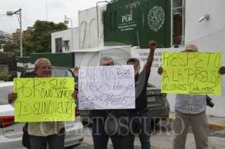 ACAPULCO, GUERRERO, 12SEPTIEMBRE2016.- Un grupo reducido de periodistas se manifestó en la delegación de la Procuraduría General de la República en este puerto, para manifestar solidaridad al periodista Gamaliel García. El pasado viernes alrededor de las 10 de la mañana, policías ministeriales de la Procuraduría General de la República catearon la estación de radio 106.3 FM en Chilpancingo, donde intentaron detener al conductor Gamaliel García, quien en ese momento se encontraba al aire. Los policías no presentaron orden de cateo, ni de presentación o de aprehensión contra el conductor del programa. FOTO: BERNANDINO HERNÁNDEZ /CUARTOSCURO.COM
