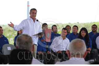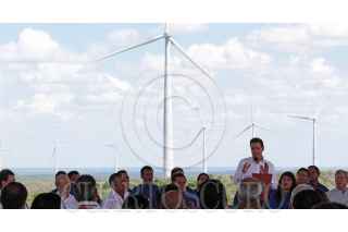 GENERAL BRAVO, NUEVO LEÓN, 12SEPTIEMBRE2016.- Inauguran Presidente Enrique Peña Nieto y el Gobernador Jaime Rodríguez Calderón, parques eólicos más grandes de México, ubicados en el municipio de General Bravo. Con la puesta en marcha de los Parques Ventika, Nuevo León se suma a las zonas de mayor generación de energía eléctrica renovable. Con una inversión de 650 millones de dólares cuenta con 84 aerogeneradores con una capacidad de 256 megawatts. FOTO: PRENSA GOBIERNO NL /CUARTOSCURO.COM