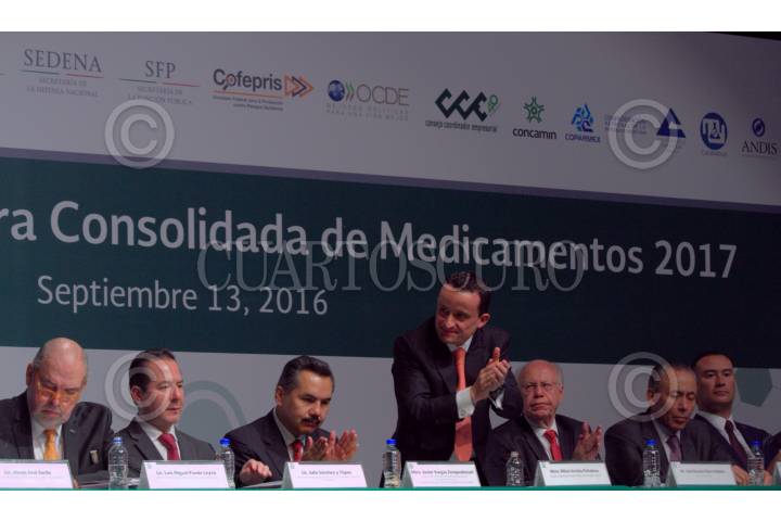 CIUDAD DE MÉXICO, 13SEPTIEMBRE2016.- Mikel Arriola, director del IMSS; José Narro Robles, secretario de Salud, y José Reyes Baeza, director del ISSSTE, durante el evento en donde se dio a conocer el proceso de licitación para la " Compra Consolidada de Medicamentos 2017", en el auditorio Moisés Callejas de la sede del IMSS. FOTO: MOISÉS PABLO /CUARTOSCURO.COM