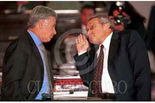 Diego Fernández de Cevallos, presidente de la Mesa Directiva del Senado, se retira de la sesión de la Comisión Permanente del Congreso. FOTO: Oswaldo Ramírez/CUARTOSCURO.COM