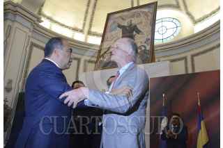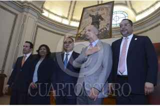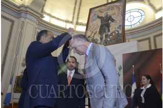 CHILPANCINGO, GUERRERO, 13SEPTIEMBRE2016.- El historiador y escritor Enrique Krauze recibió del Congreso de Guerrero la Presea Sentimientos de la Nación, durante la conmemoración del 203 aniversario del primer Congreso de Anáhuac. El gobernador Héctor Astudillo Flores fue el encargado de colgarle la medalla a Krauze Kleinbort. FOTO: JOSÉ I. HERNÁNDEZ /CUARTOSCURO.COM