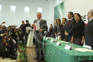 CIUDAD DE MÉXICO, 14SEPTIEMBRE2016.- María Fernanda Bayardo, recibe contancia como diputado constituyente de Enrique Reza Ochoa, presidente nacional del Partido Revolucionario Institucional, durante la ceremonia de entrega de constancias previo a la primera asamblea de la Asamblea Constituyente, realizado en la sede del PRI-DF. FOTO: ADOLFO VLADIMIR /CUARTOSCURO.COM