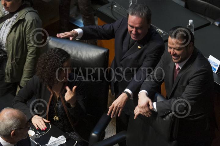 CIUDAD DE MÉXICO, 14SEPTIEMBRE2016.- Emilio Gamboa abraza a Vanessa Rubio, quien tomó protesta como nueva subsecretaria de Hacienda de la SHCP, ante el pleno del Senado de la República. FOTO: MOISÉS PABLO /CUARTOSCURO.COM