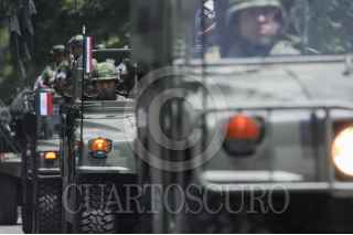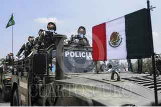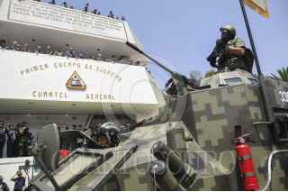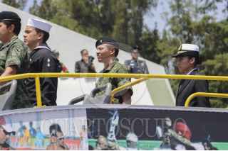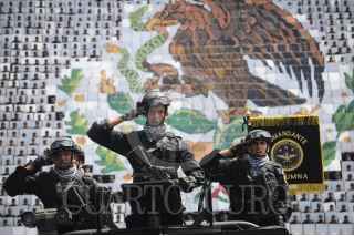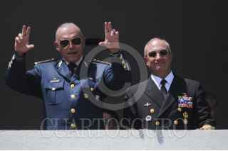 CIUDAD DE MÉXICO, 14SEPTIEMBRE2016.- Salvador Cienfuegos Zepeda, secretario de la Defensa Nacional y Vidal Francisco Soberón Sanz, secretario de Marina durante la ceremonia del pase de revista del Ejército Armada de México, Fuerza Aérea Mexicana, Policía Federal y demás agrupamientos que participarán en el desfile militar el próximo 16 de septiembre, en la plancha del zócalo capitalino. FOTO: DIEGO SIMÓN SÁNCHEZ /CUARTOSCURO.COM