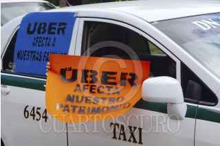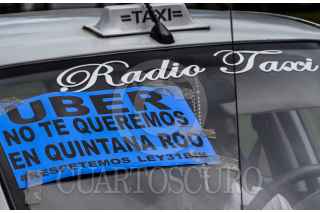 CANCÚN, QUINTANA ROO, 15SEPTIEMBRE2016.- Aproximadamente 2 mil taxistas integrantes del Sindicato Andrés Quintana Roo se manifiestaron en la zona hotelera para protestar contra la inclusión en el estado de la compañía de transporte privado "Uber". FOTO: ELIZABETH RUIZ /CUARTOSCURO.COM