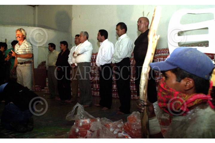 Un habitante de San Salvador Atenco, cuestiona las actitudes del subprocurador de justicia de Texcoco; José Andrés Mendiola (de pantalón beige), quien permenece cautivo de en la presidencia municipal de la localidad. FOTO: Pedro Mera/CUARTOSCURO.COM