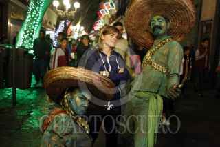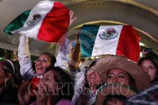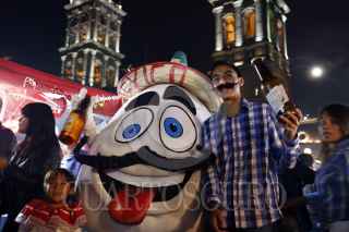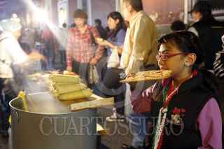 PUEBLA, PUEBLA, 15SEPTIEMBRE2016.- Una niña come un chicharrón en uno de los puestos colocados para la vendimia en el zócalo de la ciudad, en donde se llevará a cabo el tradicional grito de independendencia. FOTO: HILDA RÍOS /CUARTOSCURO.COM