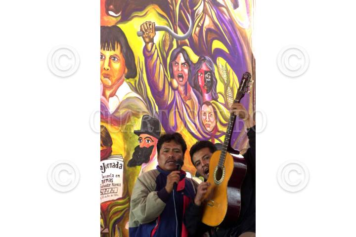 Un habitante de San Salvador Atenco, cuestiona las actitudes del subprocurador de justicia de Texcoco; José Andrés Mendiola (de pantalón beige), quien permenece cautivo de en la presidencia municipal de la localidad. FOTO: Pedro Mera/CUARTOSCURO.COM