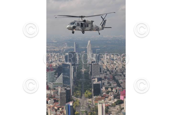 CIUDAD DE MÉXICO, 16SEPTIEMBRE2016.- Escuadrones de helicópteros tipo Cougar y Black Hawk, participaron en el desfile aéreo que organizó la Fuerza Armada de México, como parte de los festejos para conmemorar el inicio de la guerra de independencia de México. Las aeronaves despegaron de la base aérea de Santa Lucía, Tecamac, y se desplazaron por las principales avenidas de la ciudad. FOTO: DIEGO SIMÓN SÁNCHEZ /CUARTOSCURO.COM
