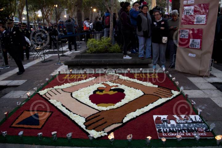 CIUDAD DE MÉXICO, 19SEPTIEMBRE2016.- Tapete conmemorativo al 31 aniversario de los sismos de 1985 en la Plaza de la Solidaridad. FOTO: ANTONIO CRUZ /CUARTOSCURO.COM