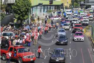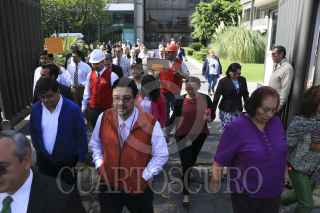CIUDAD DE MÉXICO, 19SEPTIEMBRE2016.- Trabajadores de la Torre de PEMEX participaron en el macrosimulacro que se realizó para poner en práctica la evacuación de sus instalaciones y conmemorar a las victimas del terremoto de 1985. FOTO: SAÚL LÓPEZ /CUARTOSCURO.COM