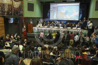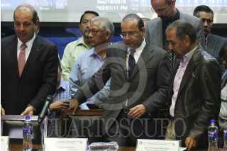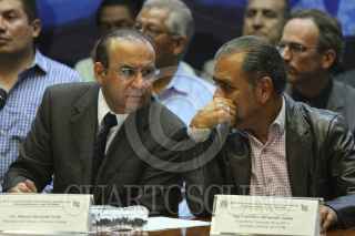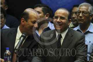 CIUDAD DE MÉXICO, 19SEPTIEMBRE2016.- Héctor Slim Seade, director general de Teléfonos de México, y Francisco Hernández Juárez, presidente colegiado de la Unión Nacional de Trabajadores y secretario general del Sindicato de Telefonistas de la República Mexicana (STRM), durante el inicio de los trabajos de la XLI Convención Nacional Ordinaria Democrática del STRM. FOTO: ADOLFO VLADIMIR /CUARTOSCURO.COM