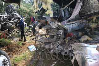IXTAPALUCA ESTADO DE MÉXICO, 20SEPTIEMBRE2016.- Dos personas perdieron la vida y 30 más resultaron lesionadas fue el saldo de un fuerte accidente entre un autobús y un camión de carga en el kilómetro 42 de la autopista México Puebla. FOTO: SAÚL LÓPEZ /CUARTOSCURO.COM