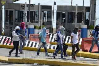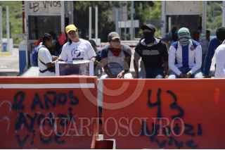 CHILPANCINGO,GUERRERO, 20SEPTIMBRE2016.-Normalistas de Ayotzinapa y algunos Padres de los normalistas desaparecidos en Iguala, tomaron la caseta de peaje de Palo Blanco en la autopista del Sol y dieron paso libre a los usuarios. Al lugar arribaron policías federales con equipo antimotines. Felipe de la Cruz y el abogado Vidulfo Rosales Sierra, anunciaron que con esta actividad iniciaron las acciones por el segundo aniversario de la desaparición de los 43 estudiantes de la normal rural Isidro Burgos. FOTO: JOSÉ I. HERNÁNDEZ / CUARTOSCURO.COM