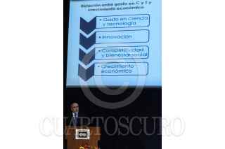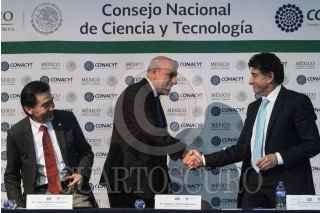 CIUDAD DE MÉXICO, 21SEPTIEMRBE2016.- Enrique Cabrero, director general del Conacyt, inauguró oficialmente el "Encuentro de Catedráticos Conacyt" en la Academia Mexicana de Ciencias, al sur de la ciudad. Compartió el presidium con Elías Micha, coordinador de Ciencia, Tecnología e Innovación de la Ofician de la Presidencia; Jaime Urrutia, presidente de la Academia Mexicana de Ciencias; y Julio Tagüeña, directora adjunta de Desarrollo Científico. FOTO: MARÍA JOSÉ MARTÍNEZ /CUARTOSCURO.COM