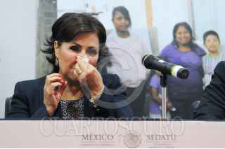 CIUDAD DE MÉXICO, 21SEPTIEMRBE2016.- Rosario Robles Berlanga, secretaria de Desarrollo Agrario, Territorial y Urbano (SEDATU), durante una conferencia de prensa en la que se abordaron los resultados del programa federal “Un Cuarto Más”. FOTO: DIEGO SIMÓN SÁNCHEZ /CUARTOSCURO.COM