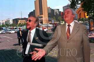 Federico Emeric Ulloa (a la derecha), quien participó en los movimientos estudiantiles de 1968, ingresa a la Fiscalía Especial para movimientos políticos y sociales del pasado, a donde fue convocado esta mañana para rectificar su declaración. FOTO: Oswaldo Ramírez/CUARTOSCURO.COM