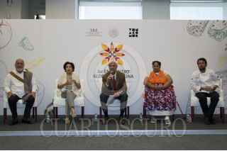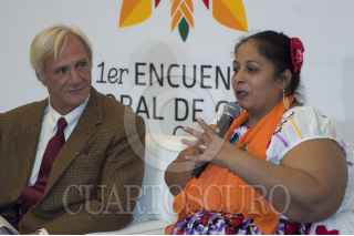 CIUDAD DE MÉXICO, 22SEPTIEMBRE2016.- Jaime Márquez Diez, asesor cultural de la Oficina de Relaciones Exteriores; Martha Soledad Gómez Atzin, cocinera tradicional de Veracruz, presentaron el Primer Encuentro Global de Cocina Tradicional. Dicho proyecto reunirá a cocineras de todo el mundo, así como a ocho representantes de los estados de la República. FOTO: GALO CAÑAS /CUARTOSCURO.COM