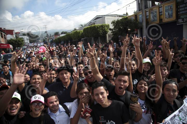 CUERNAVACA, MORELOS, 22SEPTIEMBRE2016.- Más de 30 mil estudiantes, académicos y trabajadores de la Universidad Autónoma del Estado de Morelos (UAEM) marcharon este día para pedir al gobierno de Morelos los recursos económicos que, según su dicho, retiene. También exigieron que el Gobierno Federal intervenga en el conflicto que mantiene a la UAEM a punto de entrar en una crisis financiera. Los manifestantes salieron desde el campus universitario hasta la Plaza de Armas donde instalaran un plantón en espera de una respuesta de las autoridades. La UAEM presenta un déficit de más de 400 millones de pesos. El rector Alejandro Vera Jiménez, iniciara una huelga de hambre y silencio a partir de las 20:00 del día de hoy, hasta que sea recibido por el Secretario de Gobernación Miguel Ángel Osorio Chong. FOTO: MARGARITO PÉREZ RETANA /CUARTOSCURO.COM