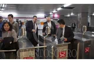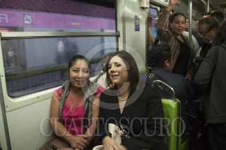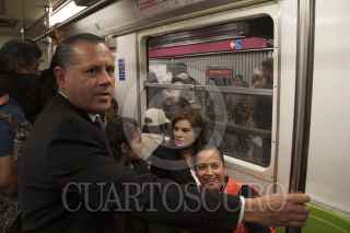 CIUDAD DE MÉXICO, 22SEPTIEMBRE2016.- Los diputados panistas Gretel Kuri Ernesto Ibarra, y Cristina Jiménez, utilizaron el Sistema de Transporte Colectivo Metro, para dirigirse al Palacio Legislativo, en el marco del Día Nacional sin Automóvil. FOTO: ANTONIO CRUZ /CUARTOSCURO.COM