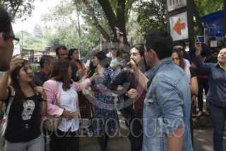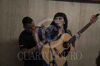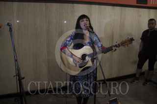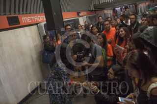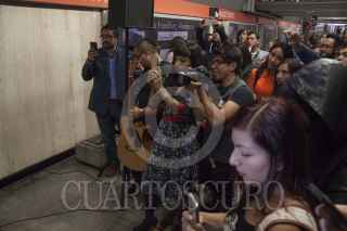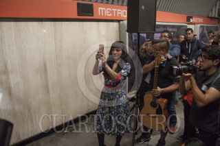 CIUDAD DE MÉXICO, 23SEPTIEMBRE2016.- La cantante chilena Mon Laforte y Caloncho ofrecieron un miniconcierto en el túnel de la estación Auditorio del Sistema de Transporte Colectivo Metro. FOTO: ANTONIO CRUZ /CUARTOSCURO.COM