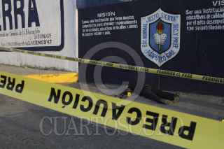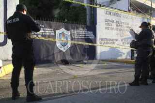ACAPULCO, GUERRERO, 23SEPTIEMBRE2016.- Un policía auxiliar fue asesinado por impactos de bala cuando hombres desconocidos intentaron secuestrar a un alumno de la escuela “Justo Sierra”, ubicada entre la calle 10 y 11. Los hechos fue momentos antes de iniciar las clases por lo que hubo pánico entre padres de familia y alumnos, al menos 10 mochilas quedaron tirada sobre el piso en esta transitada vialidad de la avenida Ejido. Al lugar arribaron policías federales quienes impidieron que trabajadores de los medios de comunicación pudieran hacer fotografías. Elementos ministeriales y peritos realizaron las diligencias de ley encontrando mas de 16 casquillos percutidos. FOTO: BERNANDINO HERNÁNDEZ /CUARTOSCURO.COM
