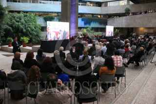 CIUDAD DE MÉXICO, 23SEPTIEMBRE2016.- Autoridades del Colegio de México, acompañados de María Cristina Cepeda titular del INBA y Rafael Tovar y de Teresa, Secretario de Cultura, durante el homenaje póstumo al arquitecto Teodoro González de León realizado en la explanada del Colegio de México. FOTO: SAÚL LÓPEZ /CUARTOSCURO.COM