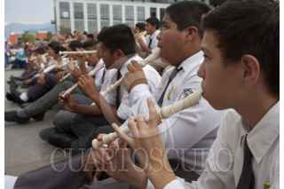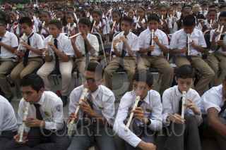 MONTERREY, NUEVO LEÓN, 24SEPTIEMBRE2016.- Diez mil estudiantes de secundaria se congregaron en la Explanada Santa Lucía para tocar con la flauta el corrido de Monterrey y el Himno de la Alegría, como parte de las actividades del Festival Internacional Santa Lucía. FOTO: GABRIELA PÉREZ MONTIEL /CUARTOSCURO.COM
