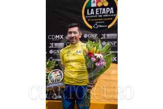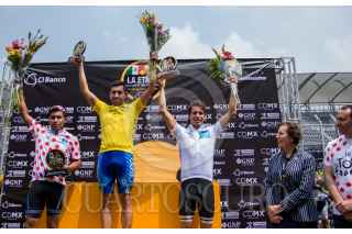 CIUDAD DE MÉXICO, 25SEPTIEMBRE2016.- Luis Pulido Naranjo, segundo lugar; César Vaquera, primer lugar, y Eduardo Moreno Castañeda, tercer lugar, de la etapa larga de la Etapa del Tour de France en la Ciudad de México. FOTO: GALO CAÑAS /CUARTOSCURO.COM