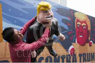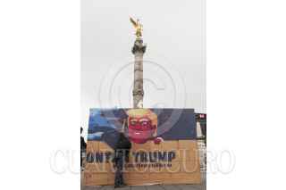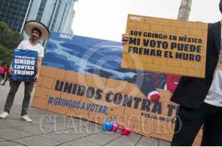 CIUDAD DE MÉXICO, 25SEPTIEMBRE2016.- Integrantes de la campaña "Gringos a votar" del grupo Avaaz se manifestaron en contra del candidato presidencial estadunidense Donald Trump, quien ha causado polémica por sus declaraciones en contra de los migrantes mexicanos. En el Ángel de la Independencia, pusieron un muro con la imagen del candidato republicano que fue aprovechada por muchos de los paseantes para sumarse al rechazo contra el empresario. Los integrantes del movimiento invitaron a los capitalinos a firmar en su página de internet www.Avaaz.org/GringosAVotar, para sumarse a la iniciativa de no votar a favor de Trump y de matenerse informado de que pasaría si él ganará la presidencia de Estados Unidos. FOTO: PAULINA NEGRETE /CUARTOSCURO.COM