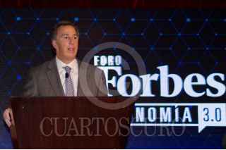 CIUDAD DE MÉXICO, 26SEPTEIMBRE2016.- José Antonio Meade Kuribeña, secretario de Hacienda y Crédito Público, participó en la inauguración del foro “Forbes Economía 3.0”, en las instalaciones del Hotel St. Regis. Durante la ceremonia le fue otorgado un reconocimiento a la excelencia empresarial a Roberto Hernández Ramírez. FOTO: GALO CAÑAS /CUARTOSCURO.COM