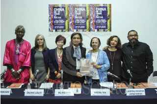 CIUDAD DE MÉXICO, 26SEPTIEMBRE2016.- Ery Camara; Alesha Mercado, de la dirección de Difusión Cultural UNAM; Zhuang Lixiao, encargada de cultura de la Embajada de China en México; Wu Weishan, director del Museo Nacional de Arte de China; Bertha Cea, directora del Antiguo Colegio de San Ildefonso; Gabriela Eugenia López Torres, de la Secretaría de Cultura de la Ciudad de México, y Ernesto Bejarano, museógrafo de San Ildefonso, presentaron a los medios de comunicación la exposición "Obras maestras del Museo Nacional de Arte de China" en el Antiguo Colegio de San Ildefonso; la cual forma parte del coloquio "China en el espejo de occidente", que se realizará el miércoles 28 de septiembre en el Anfiteatro Simón Bolívar. FOTO: ADOLFO VLADIMIR /CUARTOSCURO.COM