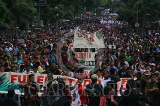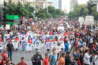 CIUDAD DE MÉXICO, 26SEPTIEMBRE2016.- Padres de los 43 estudiantes de la Normal Rural Raúl Isidro Burgos, estudiantes e integrantes de organizaciones sociales, campesinas y obreras marcharon del Ángel de la Independencia al zócalo de la Ciudad de México en memoria de los desaparecidos en Iguala, Guerrero. FOTO: SAÚL LÓPEZ /CUARTOSCURO.COM