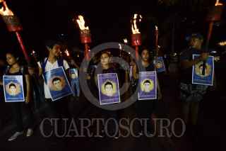 CANCÚN, QUINTANA ROO, 26SEPTIEMBRE2016.- Al cumplirse dos años de la desaparición de los 43 estudiantes de Ayotzinapa ciudadanos marcharon con el mismo número de antorchas en las calles de la ciudad, para exigir la presentación con vida de los normalistas. Estuvo presente José ángel Navarrete padre de uno de los desaparecidos. FOTO: ELIZABETH RUÍZ /CUARTOSCURO.COM