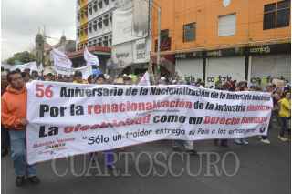 CIUDAD DE MÉXICO, 27SEPTIEMBRE2016.- Diversas organizaciones sociales marcharon de Zócalo a la Cámara de Diputados para conmemorar el 56 aniversario de la nacionalización de la industria eléctrica, exigiendo se vuelva a renacionalizar. FOTO: ARMANDO MONROY /CUARTOSCURO.COM