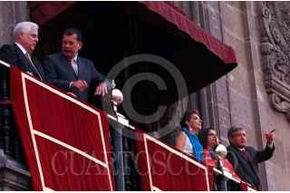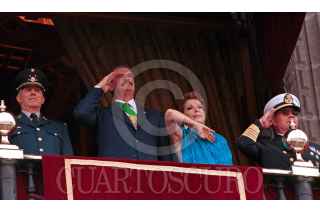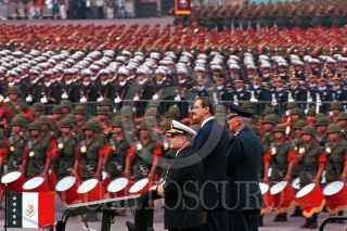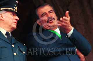 El presidente Vicente Fox dialoga con el secretario de la Defensa, Ricardo Gerardo Vega García, durante el desfile militar. FOTO: Oswaldo Ramírez/CUARTOSCURO.COM