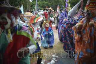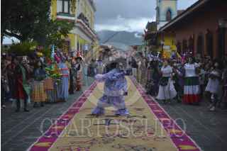 COATEPEC, VERACRUZ, 01OCTUBRE2016.- Danzantes, fieles y decenas de personas participaron en la celebración a San Jerónimo, en Coatepec, Veracruz. Caminos de aserrín guiaron el recorrido de los asistentes que acompañaban al santo hacia la iglesia principal, donde culminó el festejo con la colocación del arco en la entrada del lugar. FOTO: ALBERTO ROA /CUARTOSCURO.COM