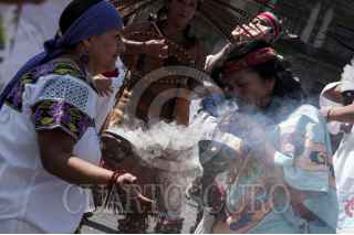 CIUDAD DE MÉXICO, 02OCTUBRE2016.- Danzantes prehispánicos, ataviados con penachos, realizarón una ceremonia al Sol, en la explanada de la plaza de la Constitución. FOTO: PAULINA NEGRETE /CUARTOSCURO.COM