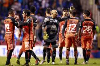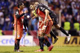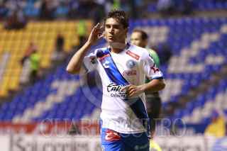 PUEBLA, 02OCTUBRE2016.- El jugador poblano Matías Alustiza festeja el gol anotado durante el partido empatado 1-1 entre el Club Puebla y el Club Pachuca correspondiente a la jornada 12 del torneo apertura 2016 de la liga MX celebrado en el estadio Cuauhtémoc. FOTO: HILDA RÍOS/CUARTOSCURO.COM
