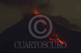 COLIMA, COLIMA, 03OCTUBRE2016.- Actividad constante se puede observar en el Volcán de Fuego durante la madrugada. Autoridades de Protección Civil mantienen perímetros de seguridad en los estados de Colima y Jalisco, para evitar que la población se acerque al coloso. El radio de seguridad para la ciudad es de 12 km, mientras que para las localidades de Jalisco es de 7.5 km, por lo que las personas no pueden permanecer en el área. FOTO: SERGIO TAPIRO /CUARTOSCURO.COM