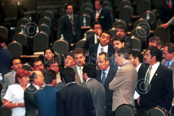 Eduardo Andrade, diputado priísta, complementará la planilla para integrar la Sección Instructora que analizará el retiro del fuero a los legisladores del PRI: Ricardo Aldana, Jesús Olvera y Carlos Romero Deschamps. En la imagen, Andrade charla con Felipe Calderón Hinojosa, líder del PAN. FOTO: Juan Pablo Zamora/CUARTOSCURO.COM