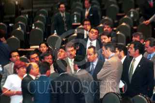 Eduardo Andrade, diputado priísta, complementará la planilla para integrar la Sección Instructora que analizará el retiro del fuero a los legisladores del PRI: Ricardo Aldana, Jesús Olvera y Carlos Romero Deschamps. En la imagen, Andrade charla con Felipe Calderón Hinojosa, líder del PAN. FOTO: Juan Pablo Zamora/CUARTOSCURO.COM