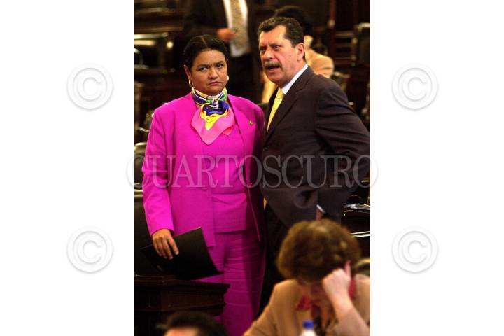 Los legisladores del PRI, Ricardo Aldana y Humberto Roque Villanueva, conversan en la sesión ordinaria de la Cámara de Senadores. FOTO: Victoria Valtierra/CUARTOSCURO.COM