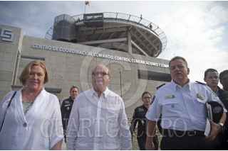 CUERNAVACA, MORELOS, 03OCTUBRE2016.- Graco Ramírez, gobernador de Morelos, acompañado de su esposa Elena Cepeda, y el Comisionado de Seguridad Pública, Alberto Capella, presentaron la nueva modalidad de servicios de emergencias 911 en el Centro de Coordinación, Control Comunicaciones y Computo C5. FOTO: MARGARITO PEREZ RETANA /CUARTOSCURO.COM