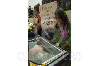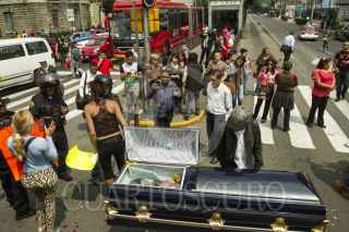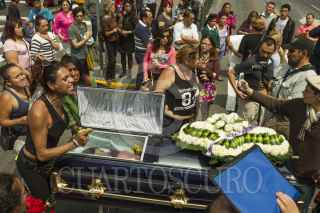 CIUDAD DE MÉXICO, 04OCTUBRE2016.- Transexuales exigieron justicia en la avenida Insurgentes, en donde colocaron el feretro con el cuerpo de Paola, sexoservidora que fue asesinada y cuyo presunto homicida fue puesto en libertad por la Procuraduría en la Delegación Cuauhtémoc. FOTO: ISAAC ESQUIVEL /CUARTOSCURO.COM