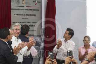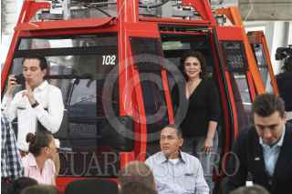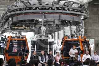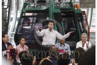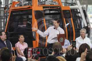 ECATEPEC, ESTADO DE MÉXICO, 04OCTUBRE2016.- El presidente Enrique Peña Nieto, acompañado por el gobernador del estado Eruviél Ávila, inauguró oficialmente las instalaciones del teleférico "Mexicable". La ruta abarca de La Cañada hasta Santa Clara, un tramo de 5 kilómetros que se recorren en 15 minutos, lo que regularmente se recorrería en 45 minutos en horas pico. FOTO: MARÍA JOSÉ MARTÍNEZ /CUARTOSCURO.COM