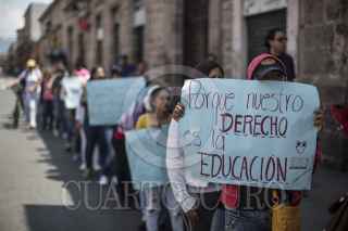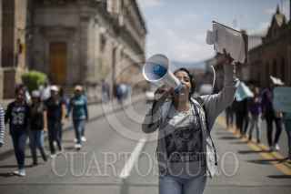 MORELIA, MICHOACÁN, 05OCTUBRE2016.- Un reducido grupo de mujeres marchó el día de hoy por la Avenida Madero, para protestar por una solución al Gobierno Estatal en el conflicto que mantiene cerradas las puertas de la Universidad Michoacana desde hace más de un mes, los miembros del Movimiento de Alumnos Rechazados, realizaron un mitín a las afueras de Palacio de Gobierno para concluir su actividad. FOTO: ALAN ORTEGA /CUARTOSCURO.COM