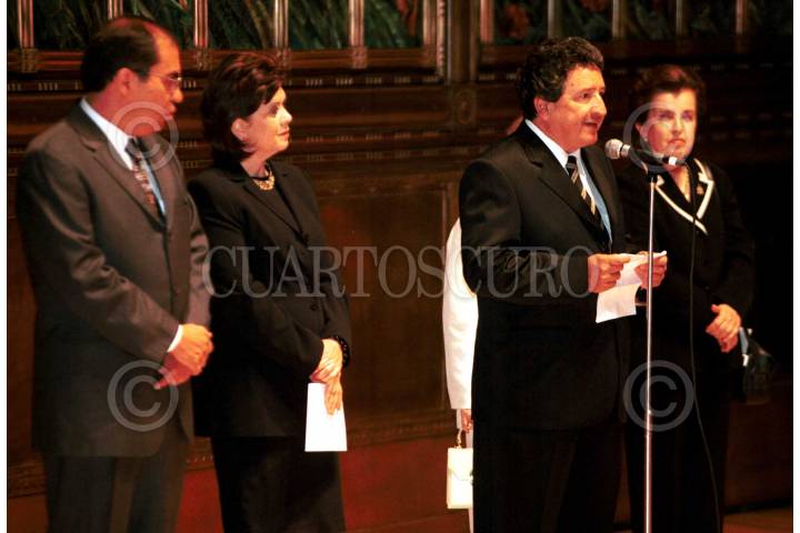 Los escritores José Emilio Pacheco, Eduartdo Elizalde y Hugo Gutiérrez Vega, ofrecieron un homenaje postumo a su homólogo Juan José Arreola, en el palacio de Bellas Artes. FOTO: Susana Navarrete/CUARTOSCURO.COM