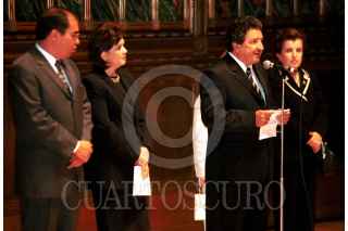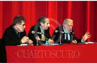 Los escritores José Emilio Pacheco, Eduartdo Elizalde y Hugo Gutiérrez Vega, ofrecieron un homenaje postumo a su homólogo Juan José Arreola, en el palacio de Bellas Artes. FOTO: Susana Navarrete/CUARTOSCURO.COM